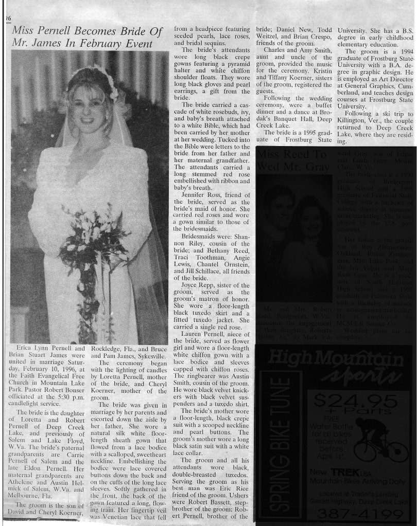 PS – Check out the local news article about our wedding. Over half of the article is about the fashion. The news writer must have known Erica well. ; )