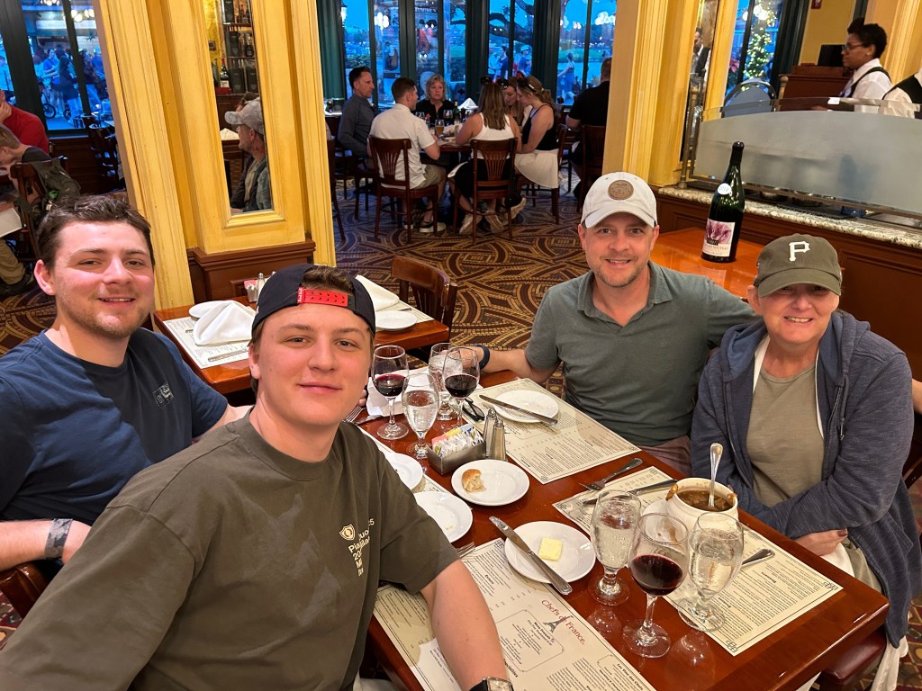 Juxtaposed with my previous post, meals were very memorable moments throughout the week (all without incident)! We ate in Polynesia, Paris, a safari guide’s canteen, Mexico and a traditional Thanksgiving meal with my parents, my three sisters and their spouses and some of their children.