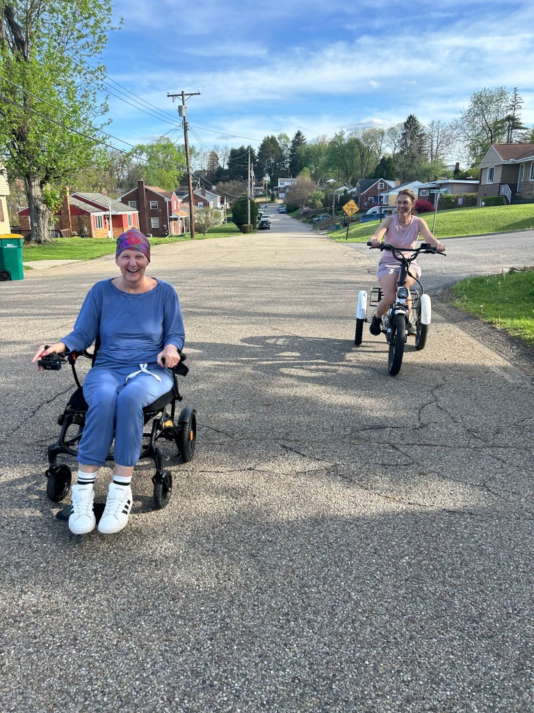 PS – Remember that trike that broke Erica’s shoulder? It’s out on the street again, cruising the neighborhood with Terra!